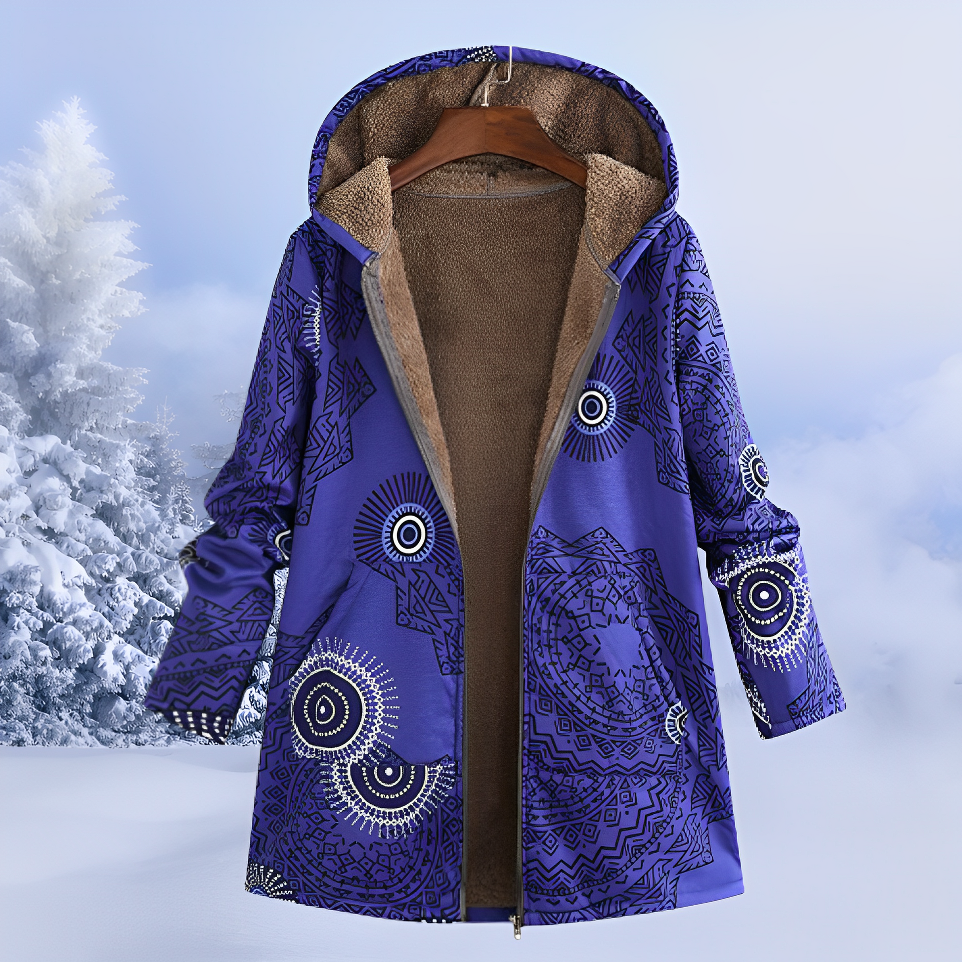 Aria – Ciepła zimowa kurtka z miękkim futerkowym wnętrzem i etnicznym wzorem dla kobiet