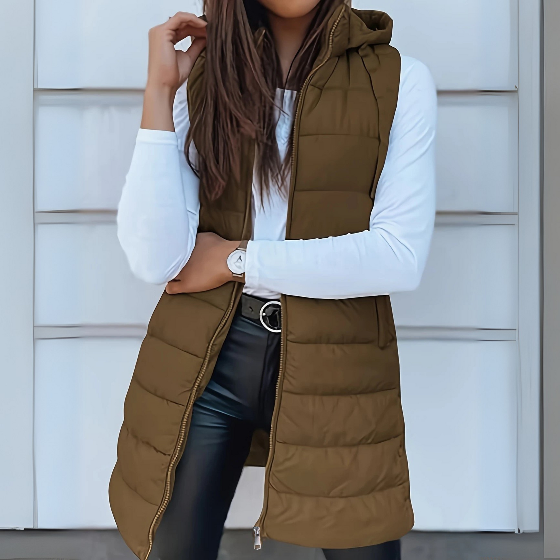 Natalia – Damska Pikowana Kamizelka z Kapturem