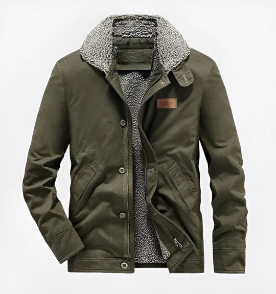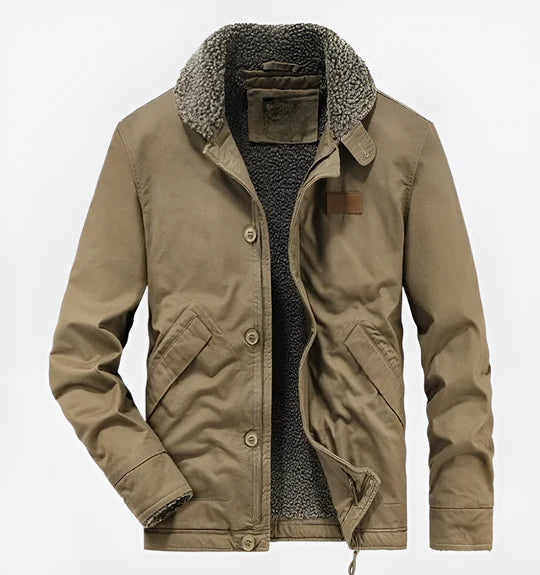 Kurtka wykonana z wytrzymałej tkaniny bawełnianej i ocieplona miękkim barankiem zapewnia solidną ochronę przed zimnem. Dopasowany fason z wysoką stójką, podwójne zapięcie na zamek i guziki oraz praktyczne kieszenie tworzą całość idealną na zimowe warunki. Doskonała na codzienne wyjścia, podróże i warstwowe stylizacje.